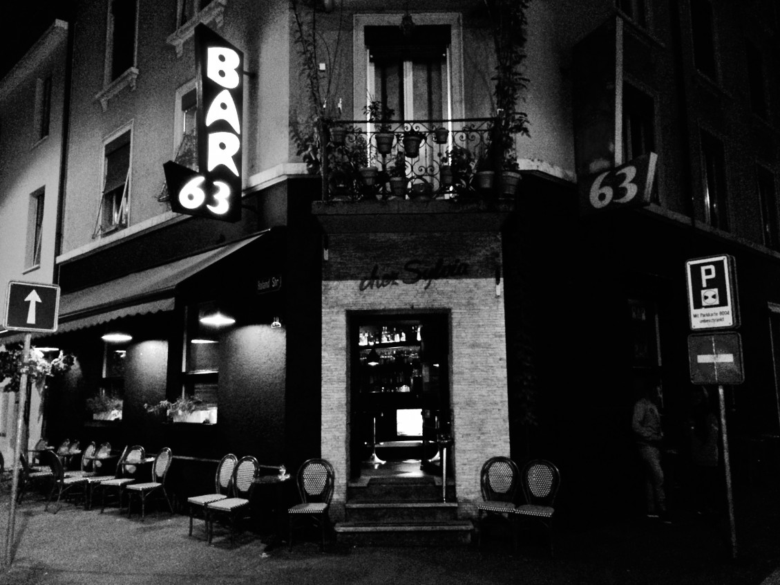 Die 63 im Namen markiert das Gründungsjahr dieser Bar, die es schon gab, bevor die Bus- und Tramhaltestellen Billetautomaten hatten. Seit mehr als einem halben Jahrhundert trifft sich hier das Quartier. Die viermal jährlich wechselnde Cocktailkarte bringt Abwechslung ins breite Angebot an Spirituosen, das speziell reichhaltig ist an feinen Rums.