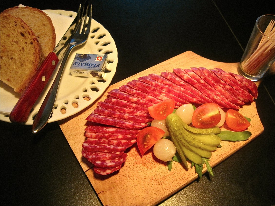 Und natürlich gibt's auch Wein. Gleich flaschenweise. Nebst der Flaschenweinkarte stehen immer acht bis zehn Offenweine im Angebot. Für den kleinen Hunger gibt es passend dazu währschaften Käse und aromatischen Salsiz.