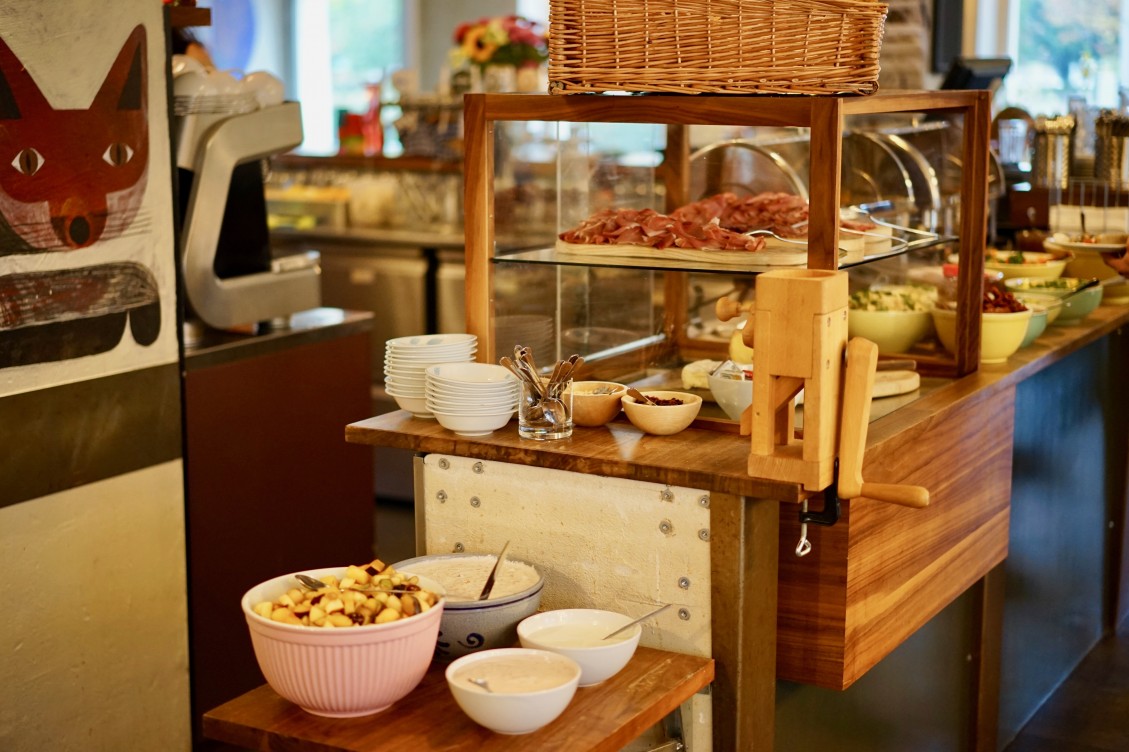 Am Wochenende gibt’s ein Brunchbuffet zum Schlemmen, eine Auswahl an selbstgebackenen Kuchen, Cafés in allen Variationen, erfrischende Limos und wenn’s dunkel wird eine wechselnde Abendkarte, Cocktails und natürlich frisch gezapftes Bier.