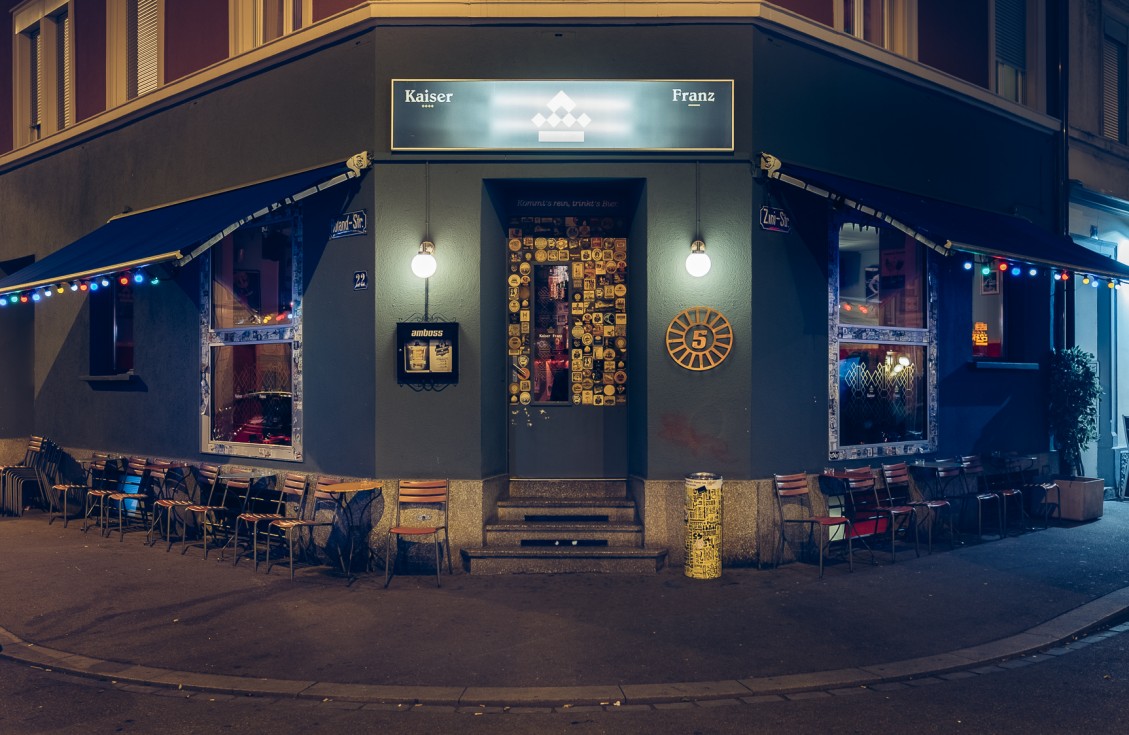 Mindestens so viel Commitment wie bei Fussball legen die Bar-Betreiber beim Bier an den Tag. Acht Zapfhahnen und über 40 verschiedene Flaschenbiere machen Kaiser Franz zum inoffiziellen Biergarten des Quartiers. Vom Zürcher Amboss über das bayrische Tegernseer, das Dortmunder Stadionbier Brinkhof’s bis zu belgischen Ambers und amerikanischen IPA’s lässt das Angebot keine Kehle trocken. Immer wieder kommen neue Namen auf die Getränkekarte, die im Übrigen weit mehr als Bier beinhaltet. Im Kaiser Franz muss niemand dursten. An den Wochenenden sorgen gelegentlich lokale DJs für guten Sound. Schaut’s rein.
