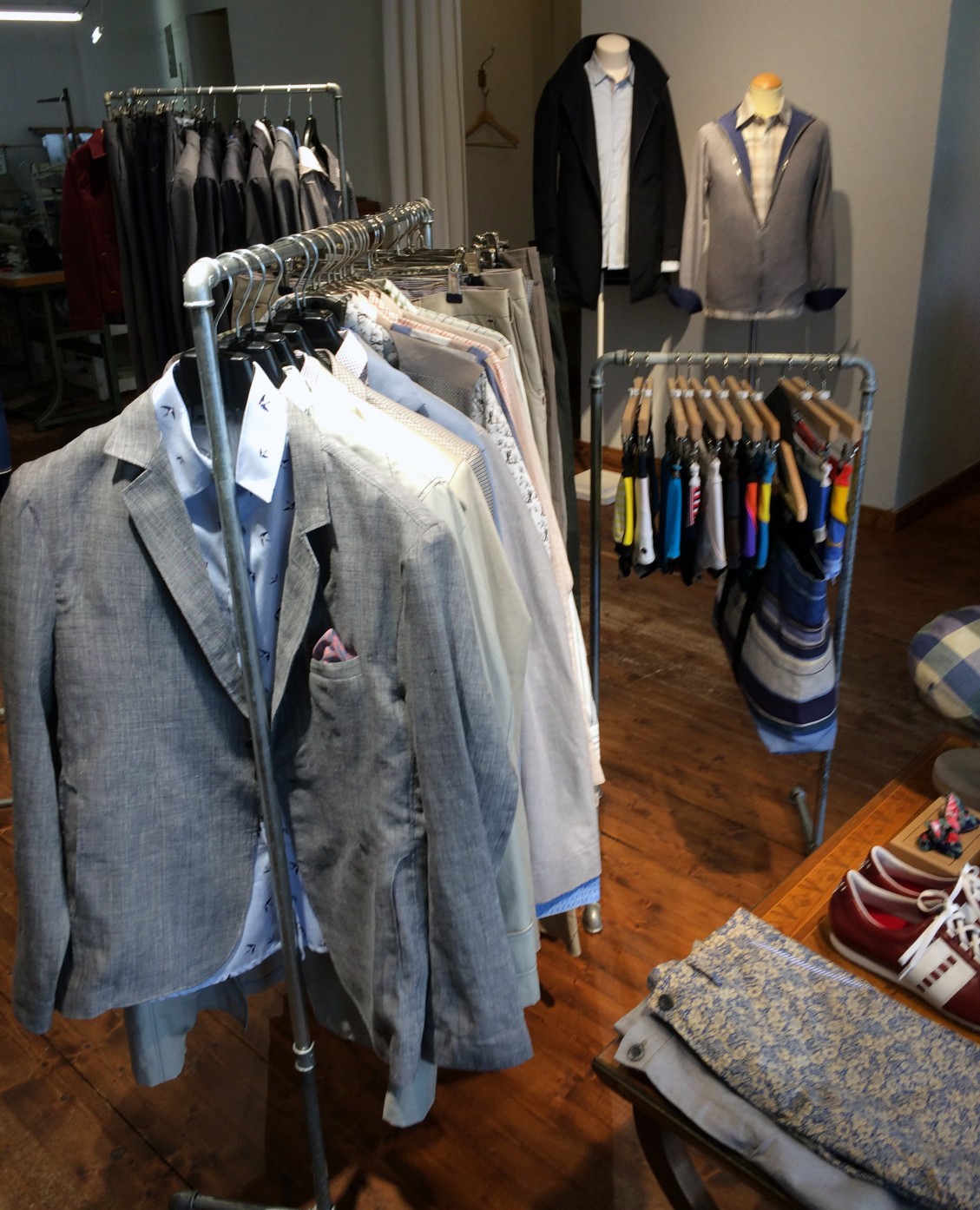 Wer das Individuelle sucht, dem liest Mike Kobel die persönlichen Wünsche von den Lippen ab. Von der Passform über die Schnittlinienführung bis zur Stoffwahl kann er alles gemäss den Vorstellungen seiner Kunden anpassen. Genäht wird das meiste erst auf Bestellung - einerseits um Überproduktion und unnötige Lagerbestände zu vermeiden und andererseits damit der individuelle Kleidungsstil des Trägers voll einfliessen kann.
