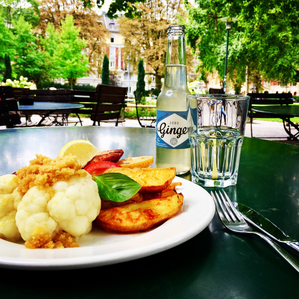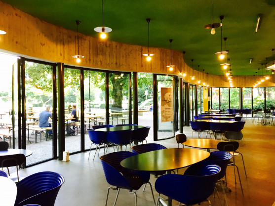 Es gibt leckere Tagesmenüs, Wähen, Suppen und Salate sowie herrlich Süsses aus der eigenen Backstube. Im Sommer ist ab 8:00 Uhr bis um Mitternacht täglich durchgehend geöffnet. Der Aussensitzplatz mit Blick auf den Park ist eine wahre Oase im betriebsamsten Quartier der Stadt. In den Wintermonaten schliesst das Restaurant um 18:00 Uhr.